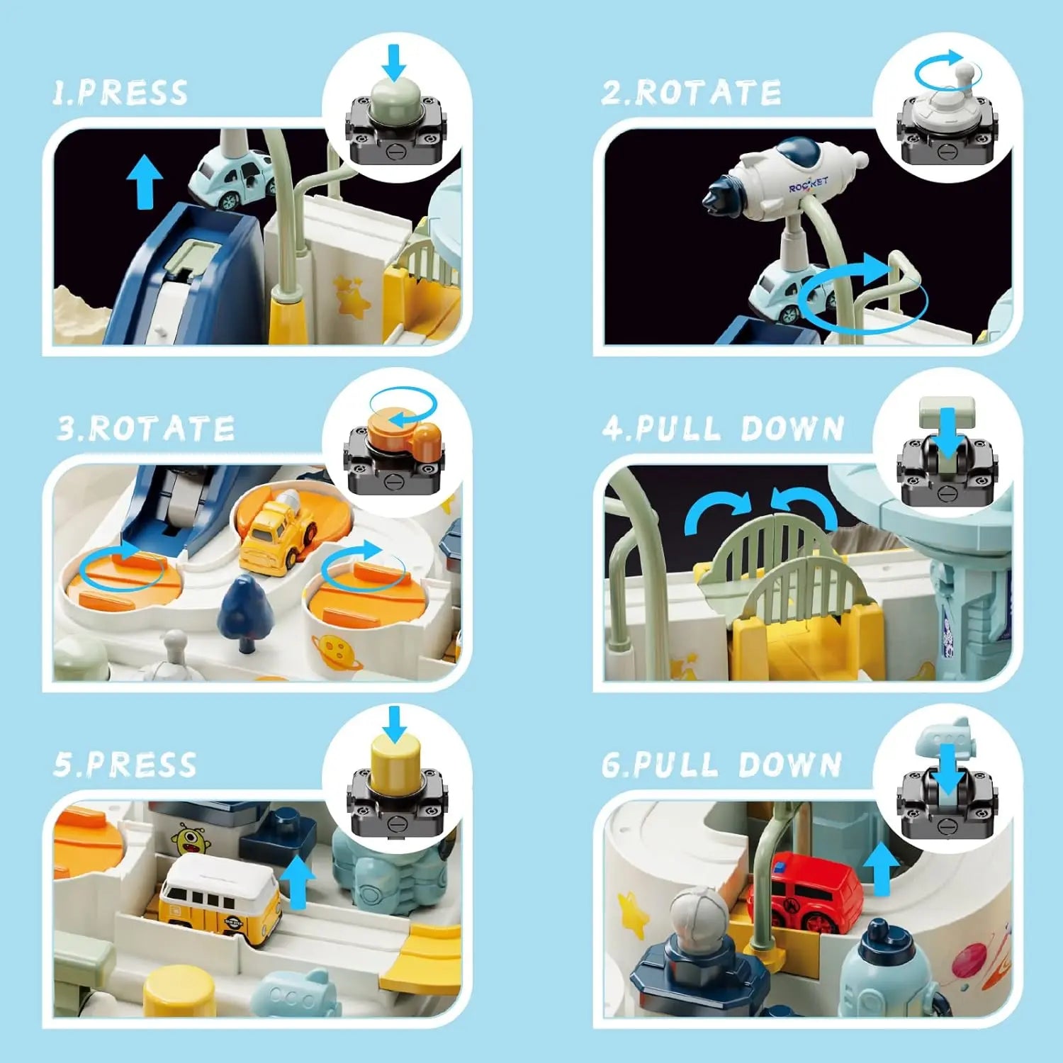 - This Tracks Toys City Rescue Toy is a perfect gift for children to improve fine motor skill and hand eye coordination. Unlike normal track toy, this brand new one require you kids to control every challenge with complex hand motor, which is much more interesting and more developmental. You can also interact with your kids to bring more companionship and joy to your kids' growth.