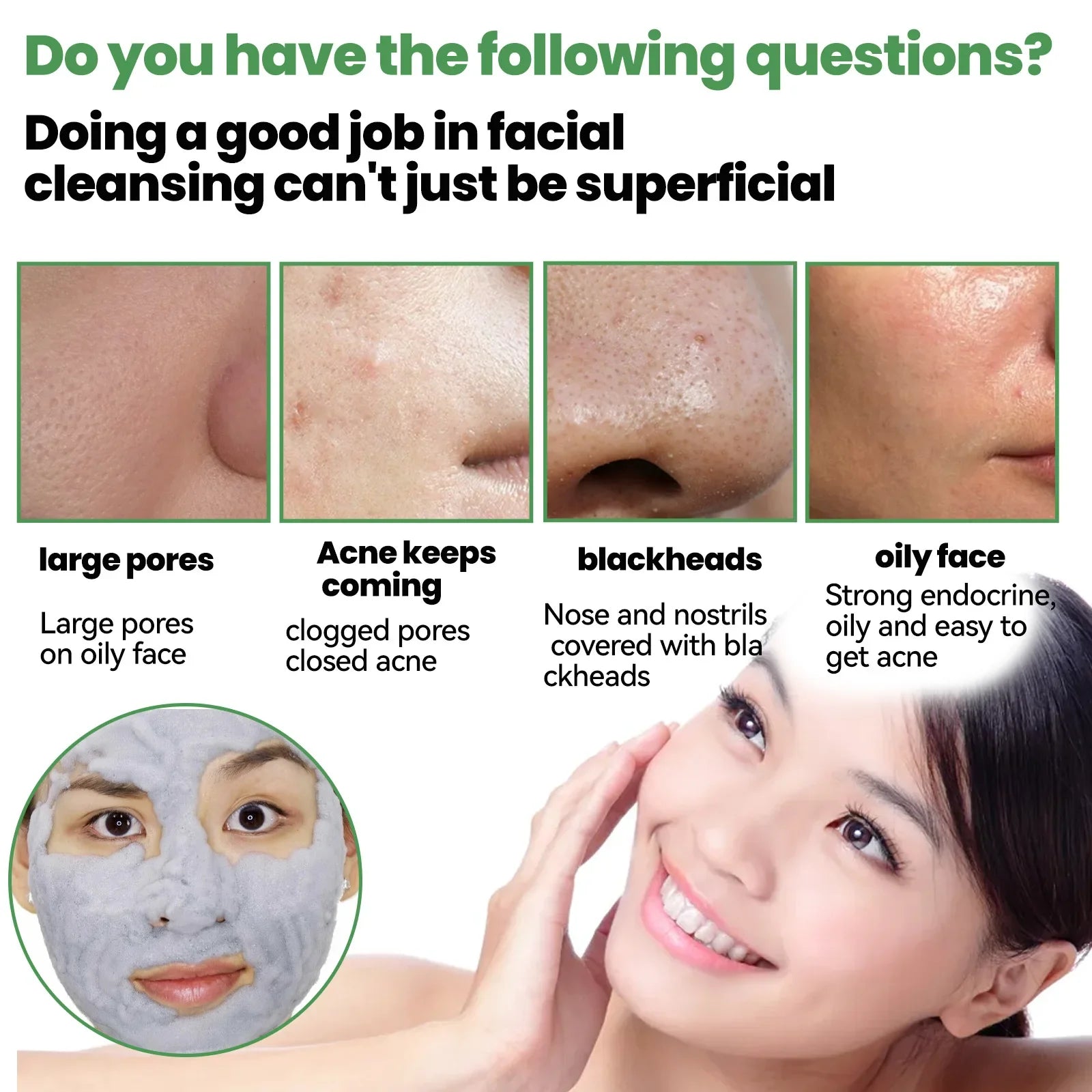 ● This carbonic acid cutin foam facial mask can solve the problems of large pores, oily face, persistent acne, pore blockage, acne prone, black and white head accumulation, etc.