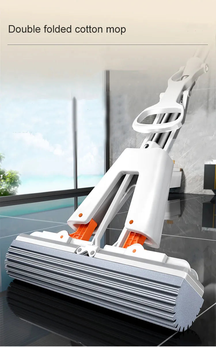 ● The sponge mop's shape features several deepening grooves that allow it to attach to dust and hair while cleaning, leaving the floor cleaner.